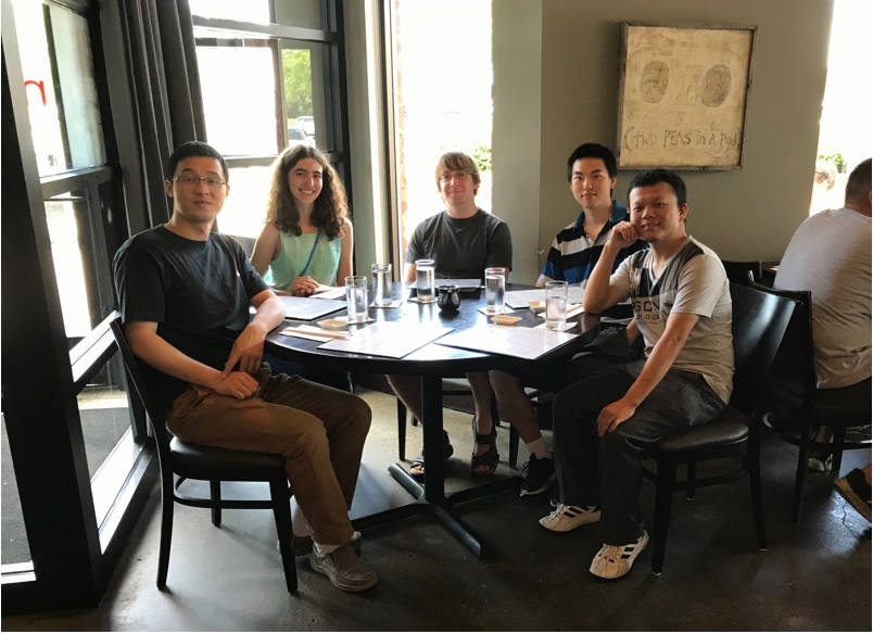 Early days at MSU, from left: Tony Gao, Kali Konstantinopoulos (high school student), Andrew Hess, Sheng Chen, Zhaowu Lin (in Sansu, 2017).