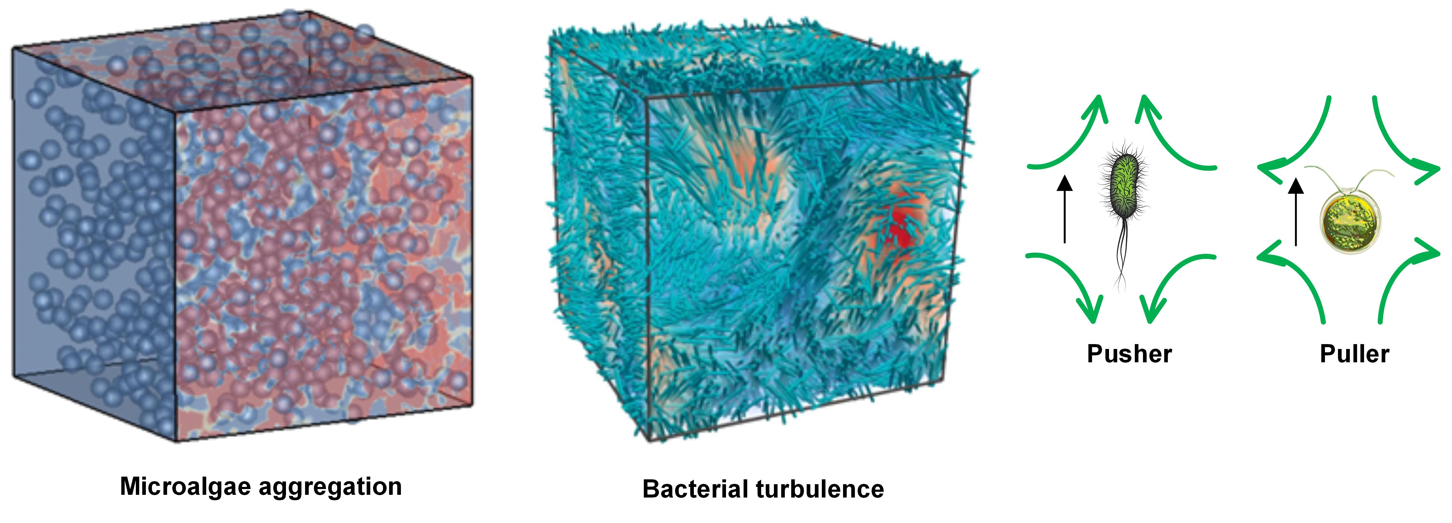 ) and rod-like pushers (e.g., E. Coli).