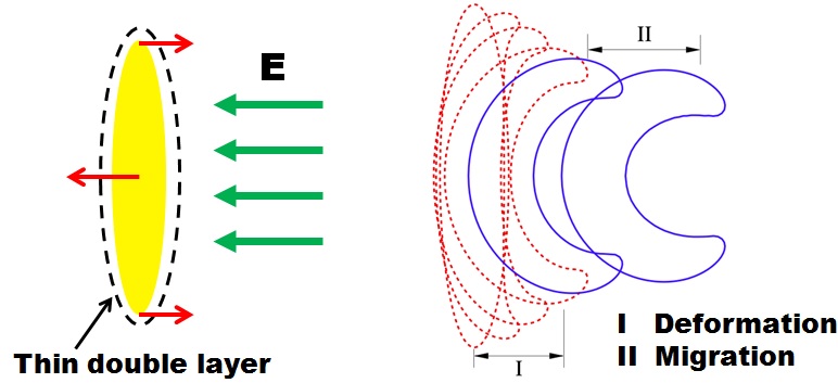 undergoing electrophoresis. The particle is elliptical in shape and is