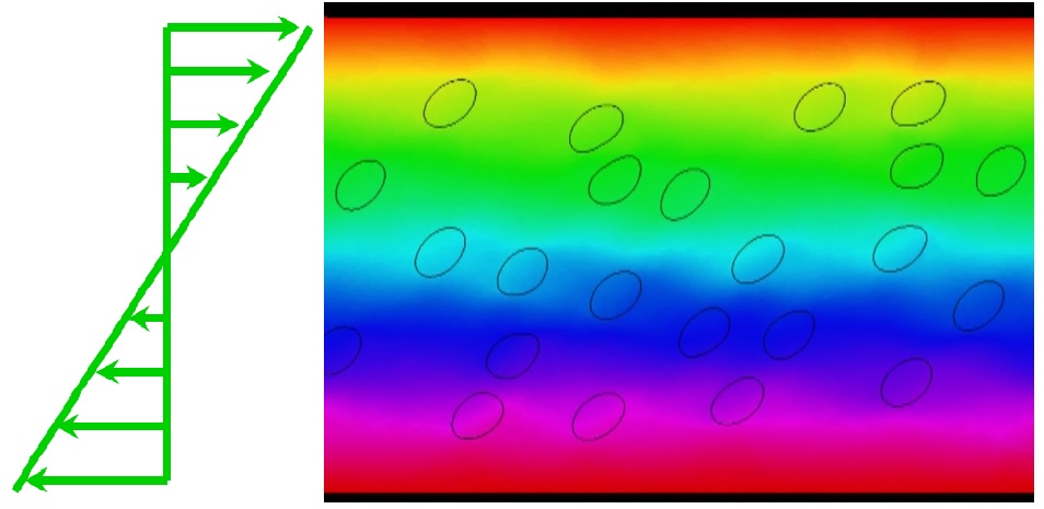 Fig 1: Suspension of deformable particles under simple shear